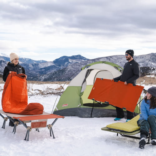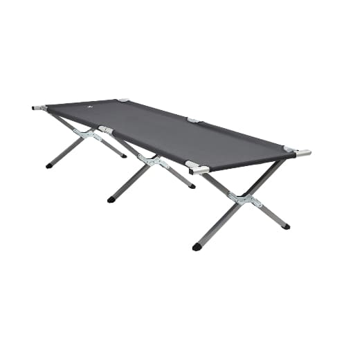 This folding camp cot is designed for durability and comfort, providing an elevated sleep surface that keeps campers off the cold ground while remaining easy to transport and set up.
